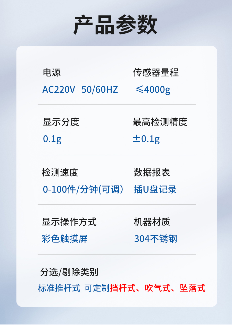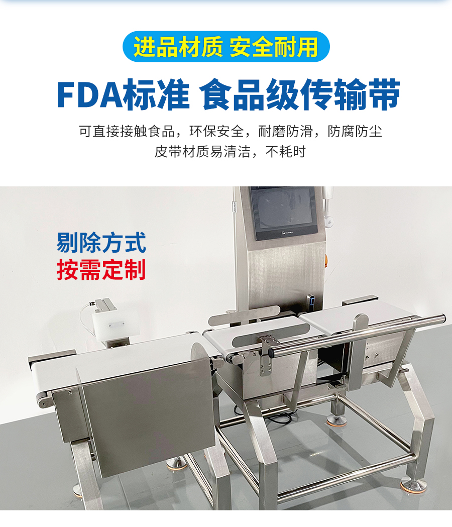 稱重機可以按需求定制嵌入流水線使用,輕松實現(xiàn)智能物流分揀、工業(yè)自動化產(chǎn)線、精準識別超重欠重,流水線食品動態(tài)稱重分選,確保包裝規(guī)格統(tǒng)一。廣泛應用于袋裝、盒裝、灌裝、箱裝、瓶裝等包裝產(chǎn)品的數(shù)量或附件缺失,重量異常等情況,并自動剔除不合格產(chǎn)品。確保產(chǎn)品的凈含量、數(shù)量、符合生產(chǎn)標準及規(guī)范要求,節(jié)省原材料成本,提高產(chǎn)品品質(zhì)與完整性,避免客戶投訴。