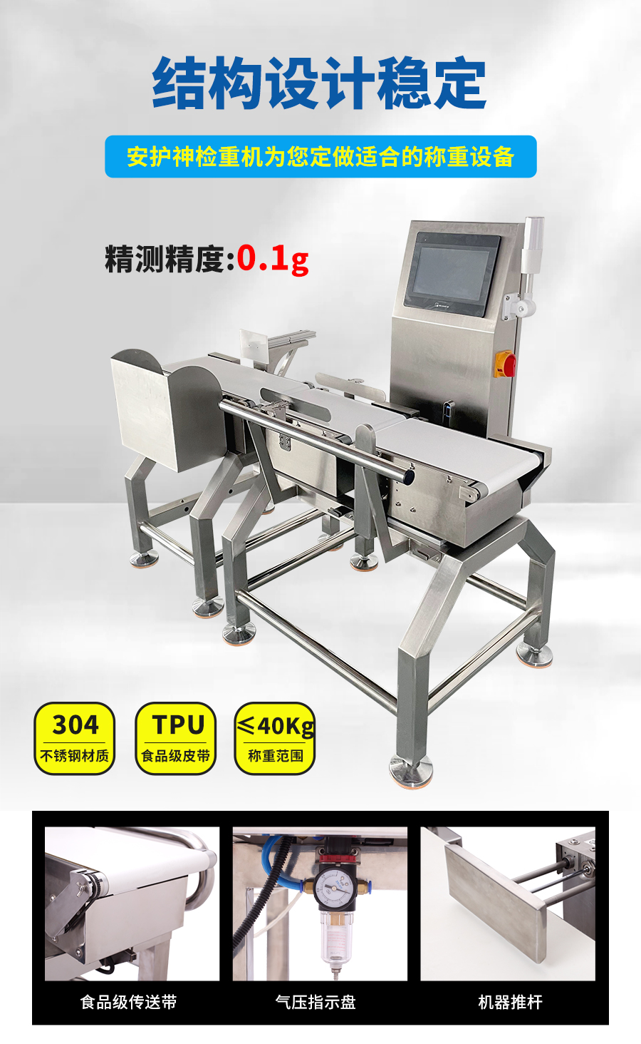 稱重機可以按需求定制嵌入流水線使用,輕松實現(xiàn)智能物流分揀、工業(yè)自動化產(chǎn)線、精準識別超重欠重,流水線食品動態(tài)稱重分選,確保包裝規(guī)格統(tǒng)一。廣泛應用于袋裝、盒裝、灌裝、箱裝、瓶裝等包裝產(chǎn)品的數(shù)量或附件缺失,重量異常等情況,并自動剔除不合格產(chǎn)品。確保產(chǎn)品的凈含量、數(shù)量、符合生產(chǎn)標準及規(guī)范要求,節(jié)省原材料成本,提高產(chǎn)品品質(zhì)與完整性,避免客戶投訴。